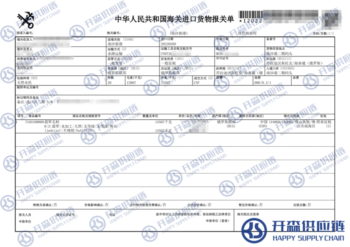 一、俄羅斯翡翠毛料進(jìn)口報(bào)關(guān)代理案例詳情