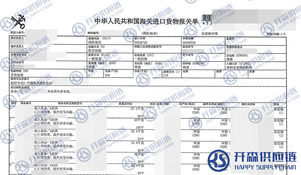 【本文結語】 上述就是韓國成人用品飛機杯進口報關代理服務【深圳機楊進口案例】的全部內容,希望能對您有所幫助,如有成人用品進口報關上任何疑問及問題可隨時在線聯系我們或撥打 18002611553,開森供應鏈擁有豐富的成人用品進口報關操作經驗及案例,10余年進口經驗為您所用,各類進口疑難都能為您一一解答及協助快速處理解決!